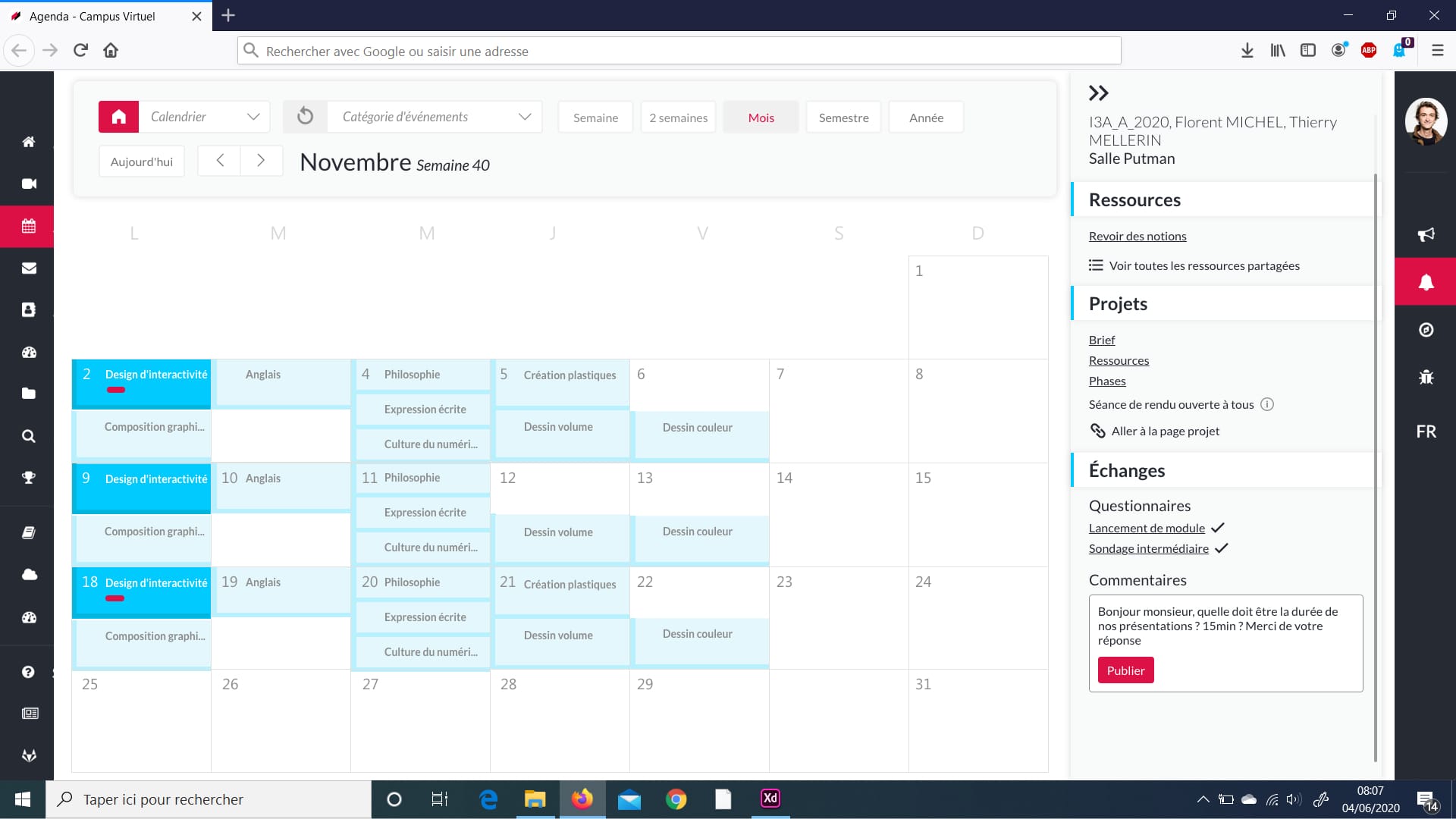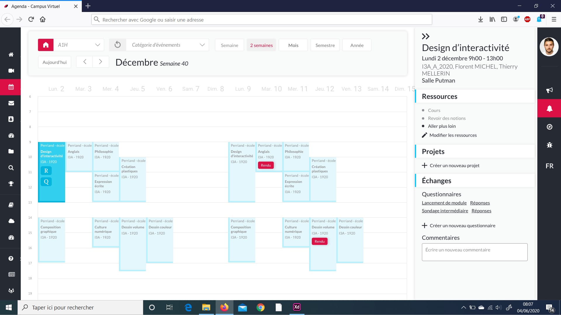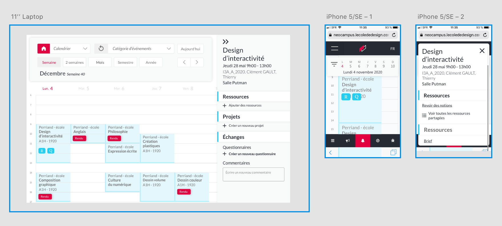 We designed a responsive agenda that make class management easier for the teacher, the student but also the business service of the school (the service in charge of making the link between our school and the professional world).