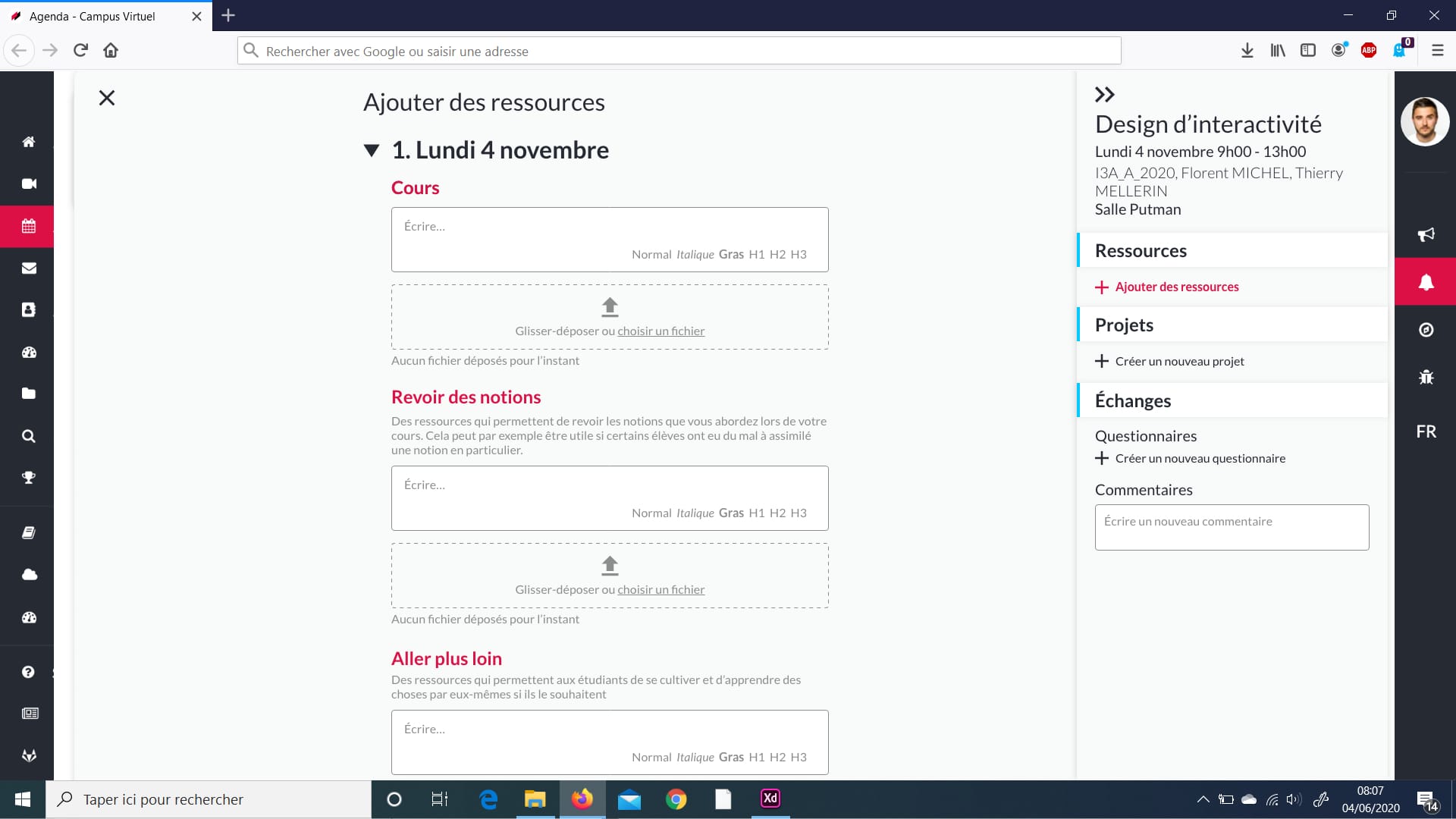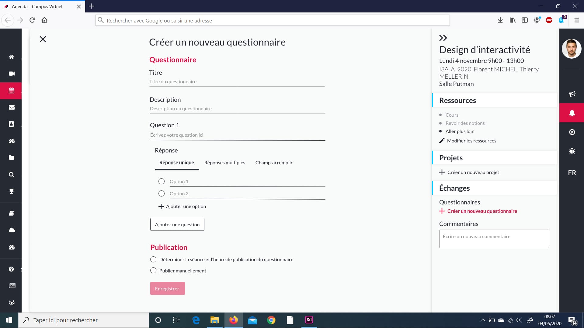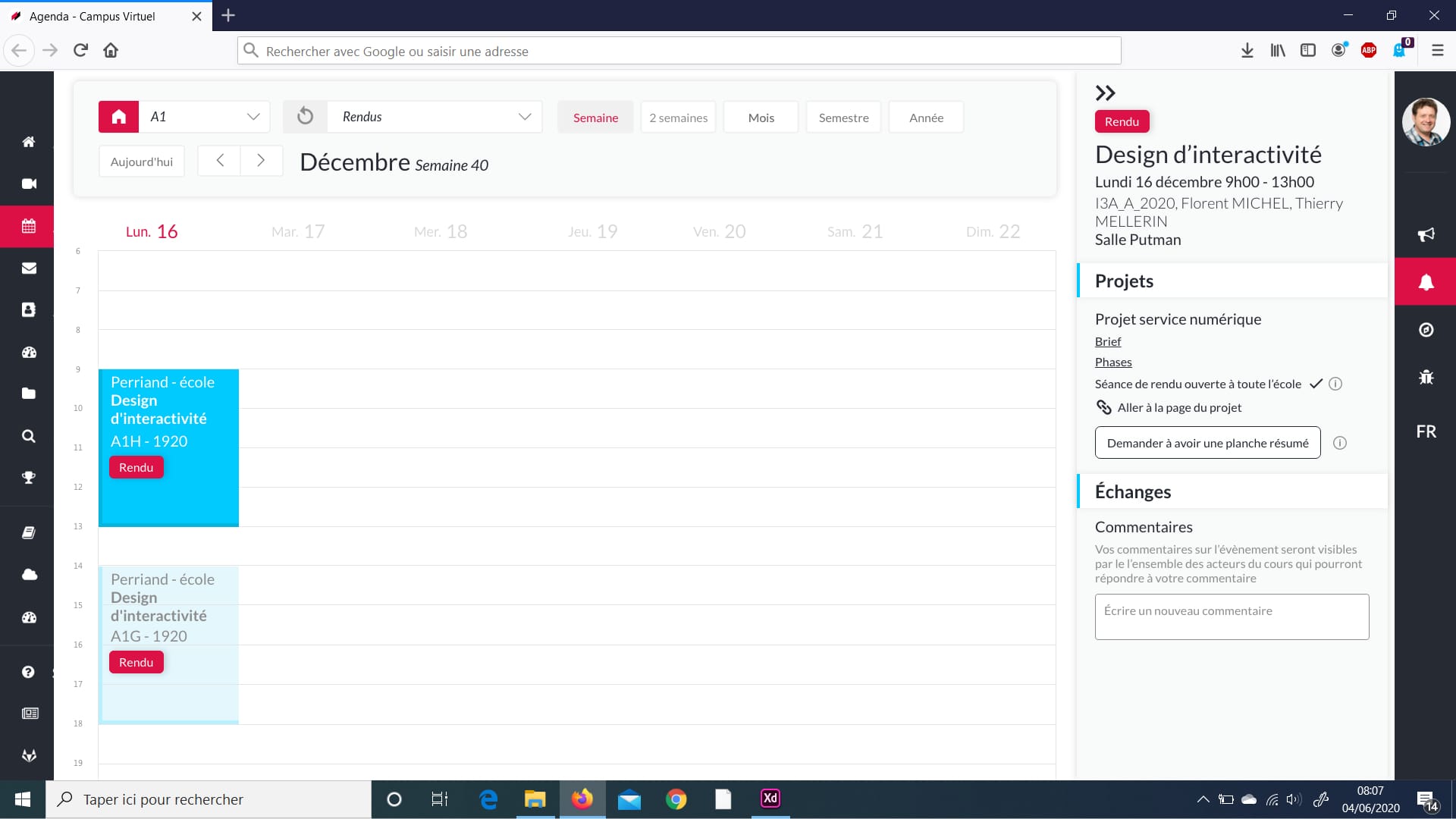We designed a responsive agenda that make class management easier for the teacher, the student but also the business service of the school (the service in charge of making the link between our school and the professional world).